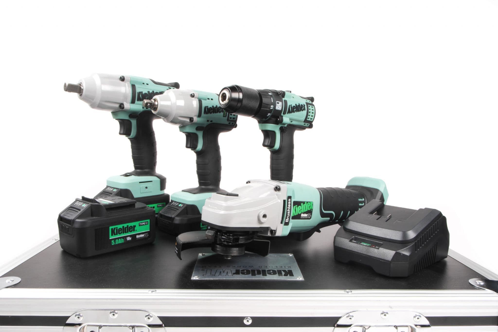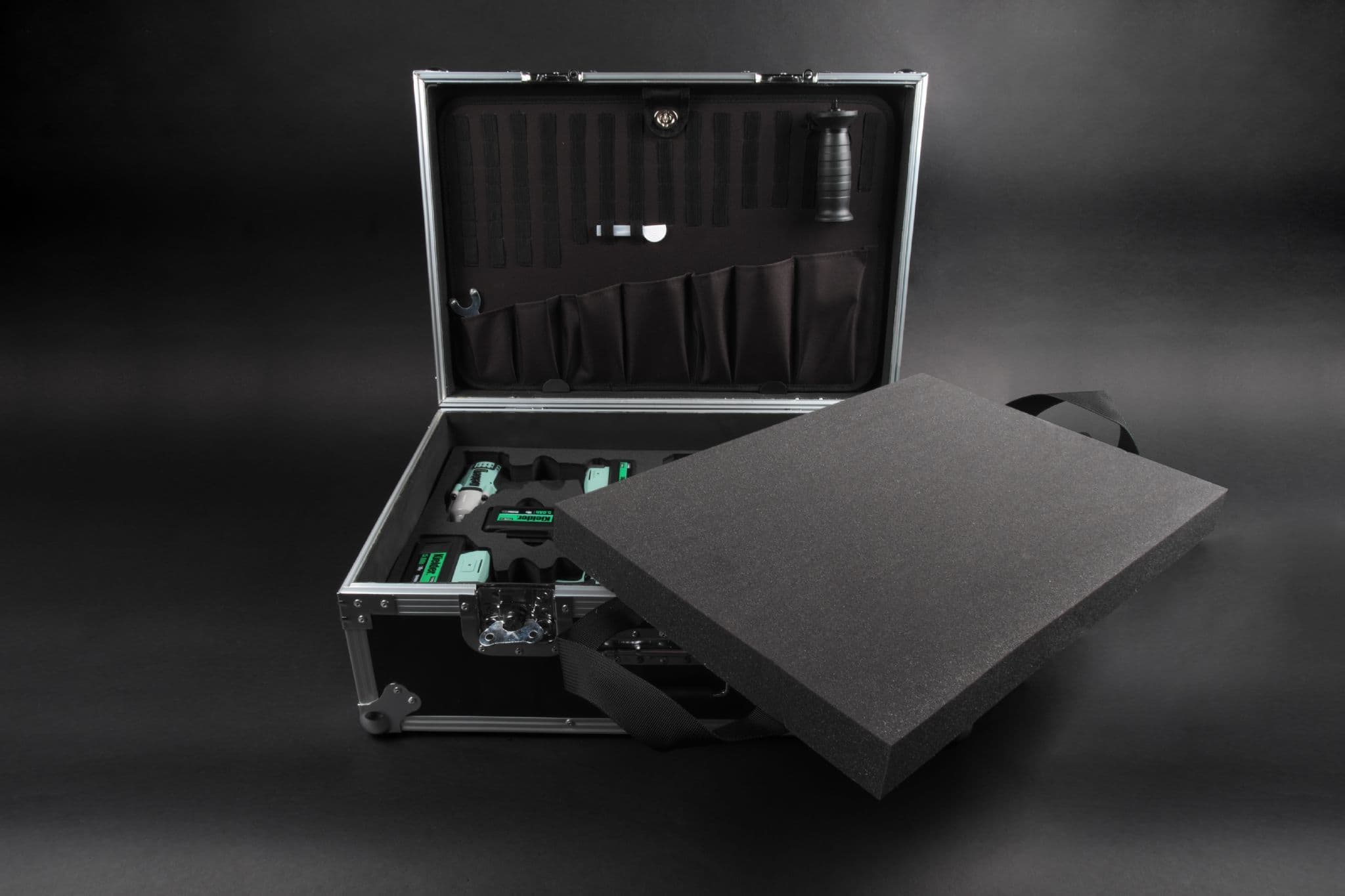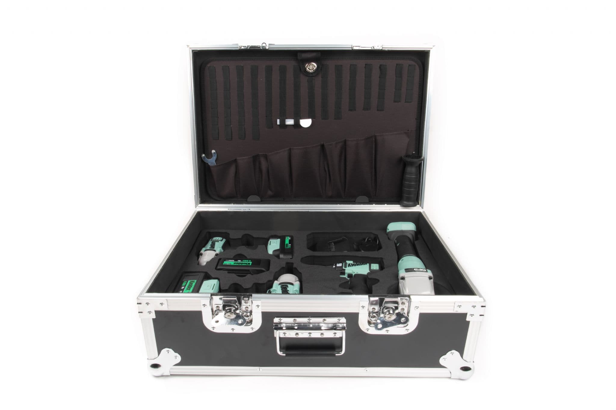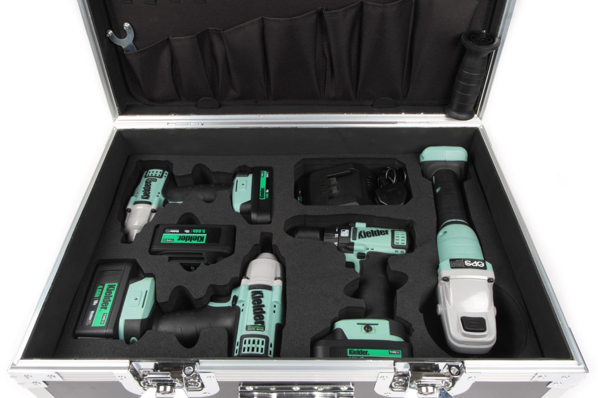 Customisable and transportable tool storage solution, loaded with Kielder TYPE18 Tools, Batteries and Charger in Eva foam insert. PRO-X cases are also supplied with additional upper flexi foam insert, that can be hand-cut, and elasticated tool holder, under lid, for comprehensive hand tools and equipment storage.